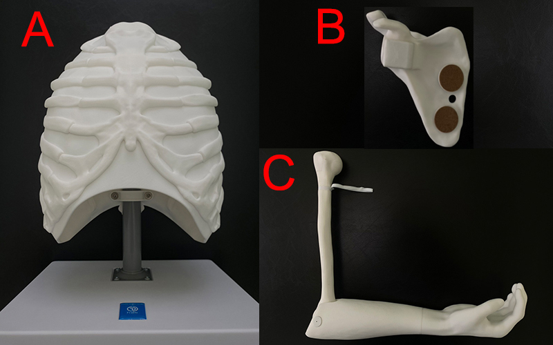 肩鎖関節脱臼、肩関節脱臼、肘関節脱臼に対応したシミュレータです。